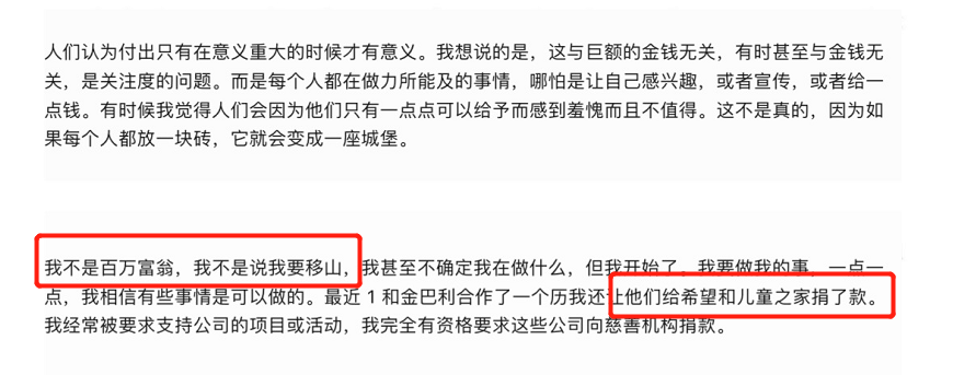对于做公益,欧嘉·柯瑞兰寇曾经说过这样的一句话,公益与金钱无关。