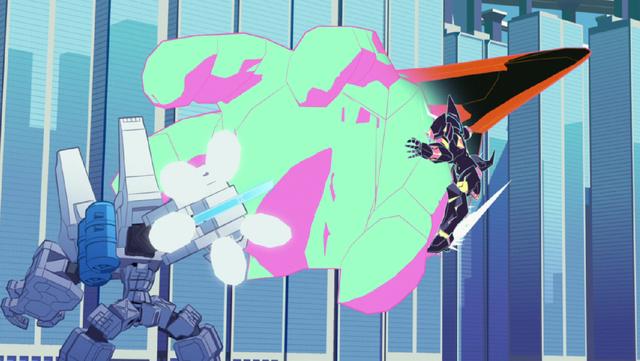 trigger社今石洋之导演之前有《斩服少女》一作,同样是这种风格的动作作品,其中的打斗表现得就是酣畅淋漓,而《普罗米亚》不仅继承了《斩服少女》的动作戏的优点,靠着剧场版的大制作,将画面的独特的美感发挥到了新的高点。不过这种风格,有着gainax浓郁的味道,我个人认为是喜欢的会非常喜欢,不喜欢的就不太容易接受的风格,它并不是吸引大众的风格,也不是清新和唯美,而是简单的几何图形的结合,再加上极致的线条美感。