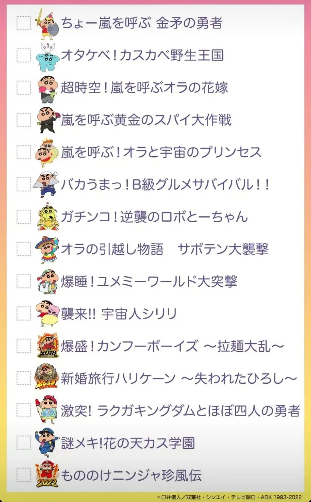 官方还贴心得把每一部的名字和小新形象对应起来,相信一部不落都看过的小新“死忠粉”们一定会感动得热泪盈眶吧!!