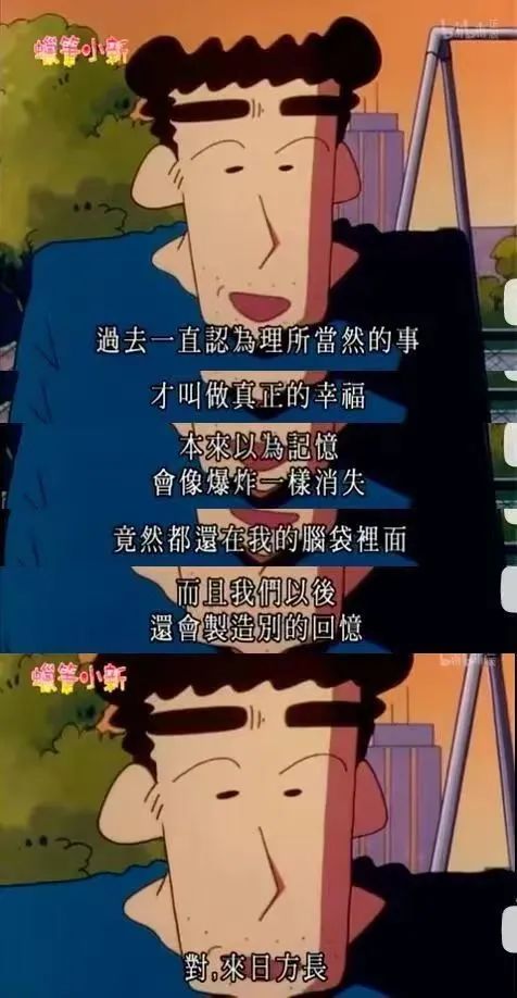 不同的人在不同的时间点看蜡笔小新的感受一定都是不一样的。小新的故事很治愈,很温馨,会给人力量。开心的人看到是双倍的快乐,难过的人看到也会从中看到生活的希望。所以有人说:“生活越坏,越要看蜡笔小新,这就是向往的生活!”