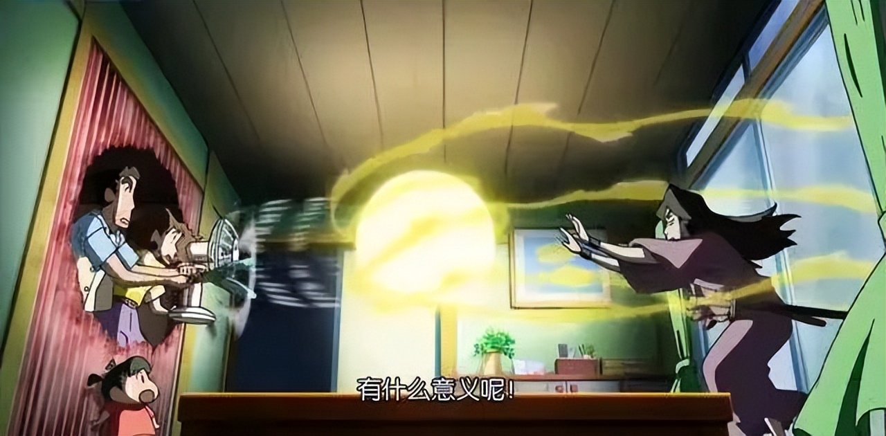 最后,野原一家和屁祖影一家集合在一起,两家汇聚,共同向前冲,一起拯救了世界。