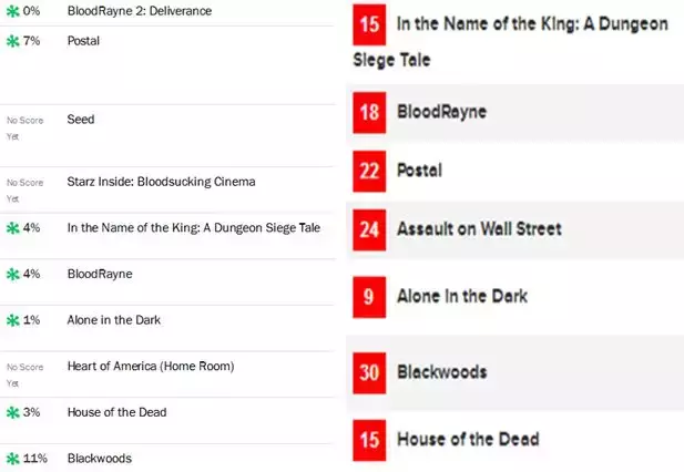 是的,乌宝的电影大部分都是游戏改编电影——《吸血莱恩》、《鬼屋魔影》、《死亡之屋》、《地牢围攻》都是他糟蹋过的ip。