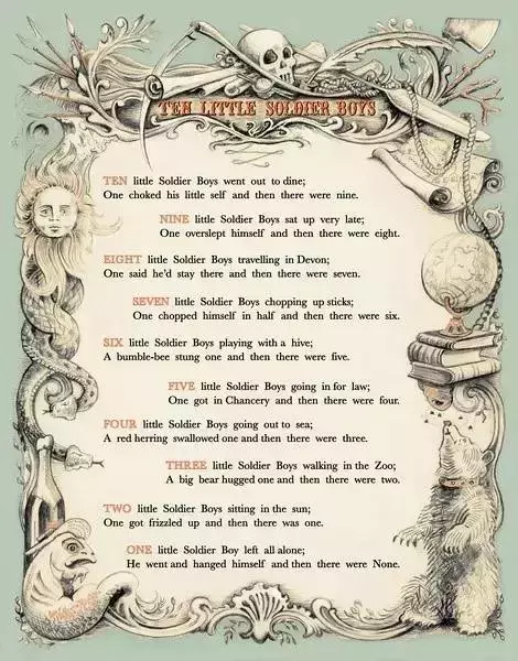 “十个印地安小男孩,为了吃饭去奔走;噎死一个没法救,十个只剩九。