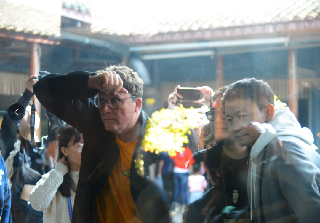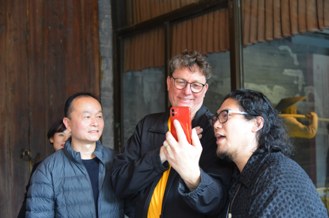 答:《收租院》画册陪伴我四十多年了,但我从没想到这些雕塑竟然展览在如此美丽的一个地方,我本来想象的是它们会放在一个传统的、单调的博物馆里,但没想到是在一个这么有历史价值,又有很多漂亮建筑和优美自然环境的地方。我很希望有机会以后能共同创作一个可以纪念赵树同老师的作品,共同创造一些特别的作品。