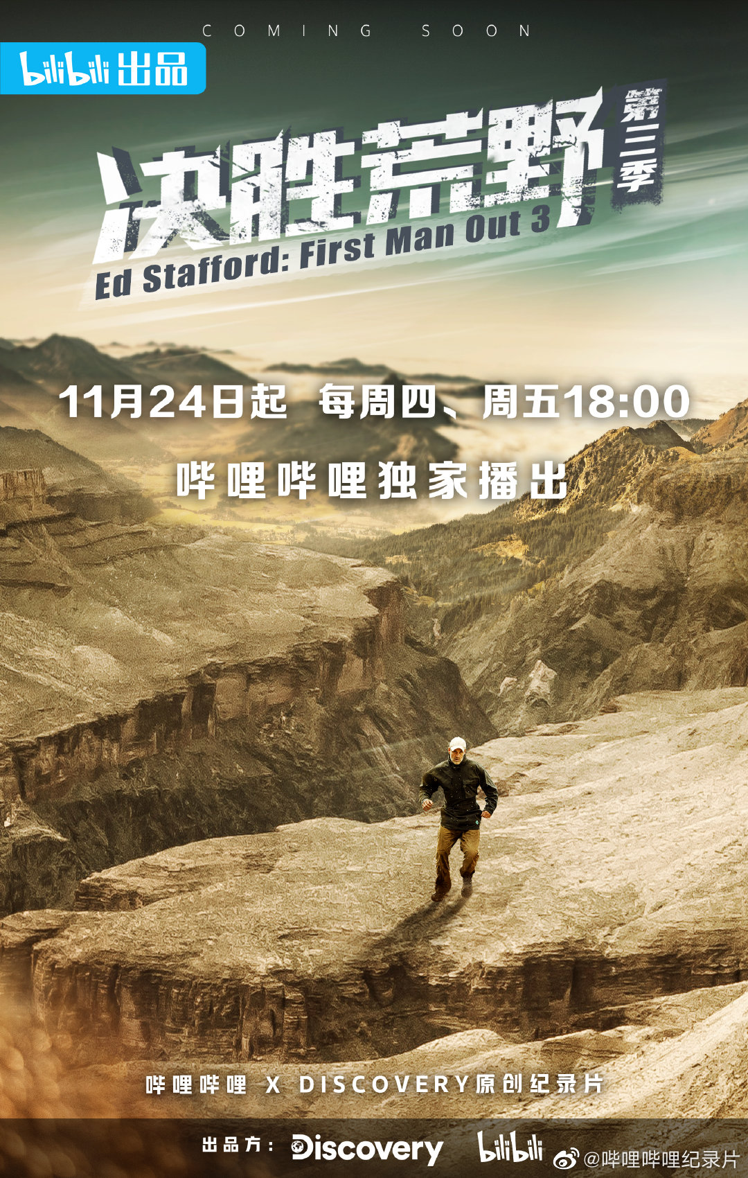 it之家 11 月 17 日消息,据b站官方消息,由b站与 discovery 联合出品的《决胜荒野 3》将在 11 月 24 日起,每周四、周五 18:00 b站全球首播。