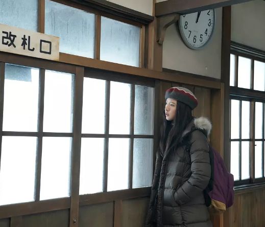 与日本男孩富哉一见钟情,在漫天的白雪中,顺理成章的求婚,顺理成章的有情人终成眷属。