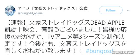 今天(7月21日)《文豪野犬》动画官方推特宣布:朝雾卡夫卡原作漫画《文豪野犬》改编第三季tv动画确定!依旧有骨头社进行制作!还表示接下来请大家一如既往的支持该作品,不过并没有公布第三季的开播时间等详细情况。