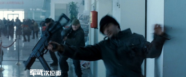 ▲在一个苏联军事基地休整之后,罗斯一行人发现自己被暴徒包围了,他和麦琪(余男)冲出房间展开激战