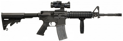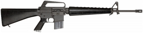 ▲安装有a1消焰器,20发弹匣的m16 sp1,经常出现在表现越南战争的电影中
