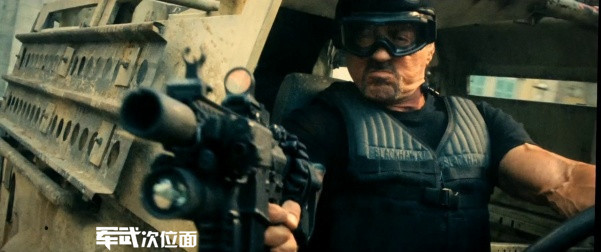 巴尼.罗斯,阴阳,贡纳在一开始的营救行动中都有使用,安装有vitor vis-1的机匣。在搜寻中国失事飞机的路上很多敢死队队员都在使用这种枪。这些枪应该是“独立工作室服务公司”为本片制作的道具。