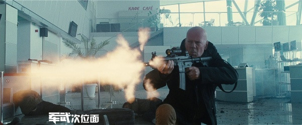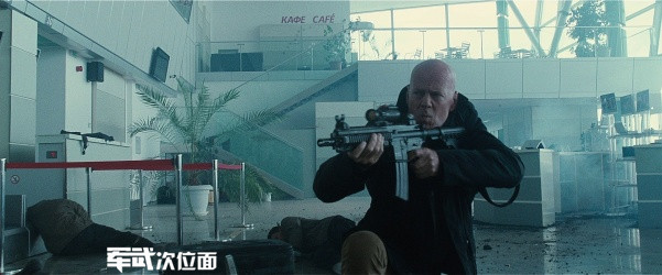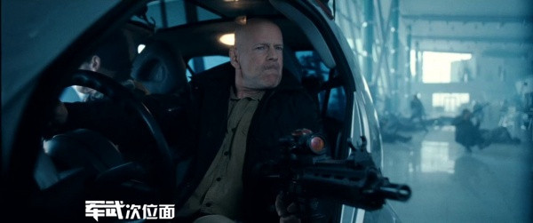 ▲教堂(布鲁斯.威利斯)开车,战壕一把拉下了小车的车门坐了上去并用这把霰弹枪大杀特杀
