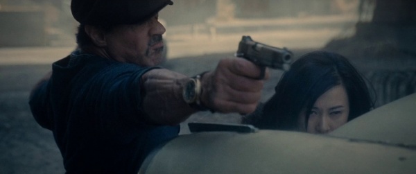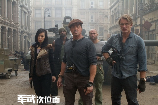 ▲麦琪和巴尼并肩作战,影片中的余男摆脱了中国演员只是露脸的尴尬,不仅有很多和一众好莱坞肌肉猛男飙戏的戏份,并且展示了她不凡的身手