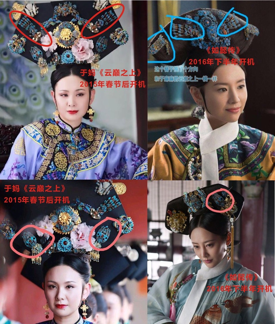 相似的珠花,于正在《云巅之上》、《美人无泪》中用过,都是在《如懿传》开拍前用的。