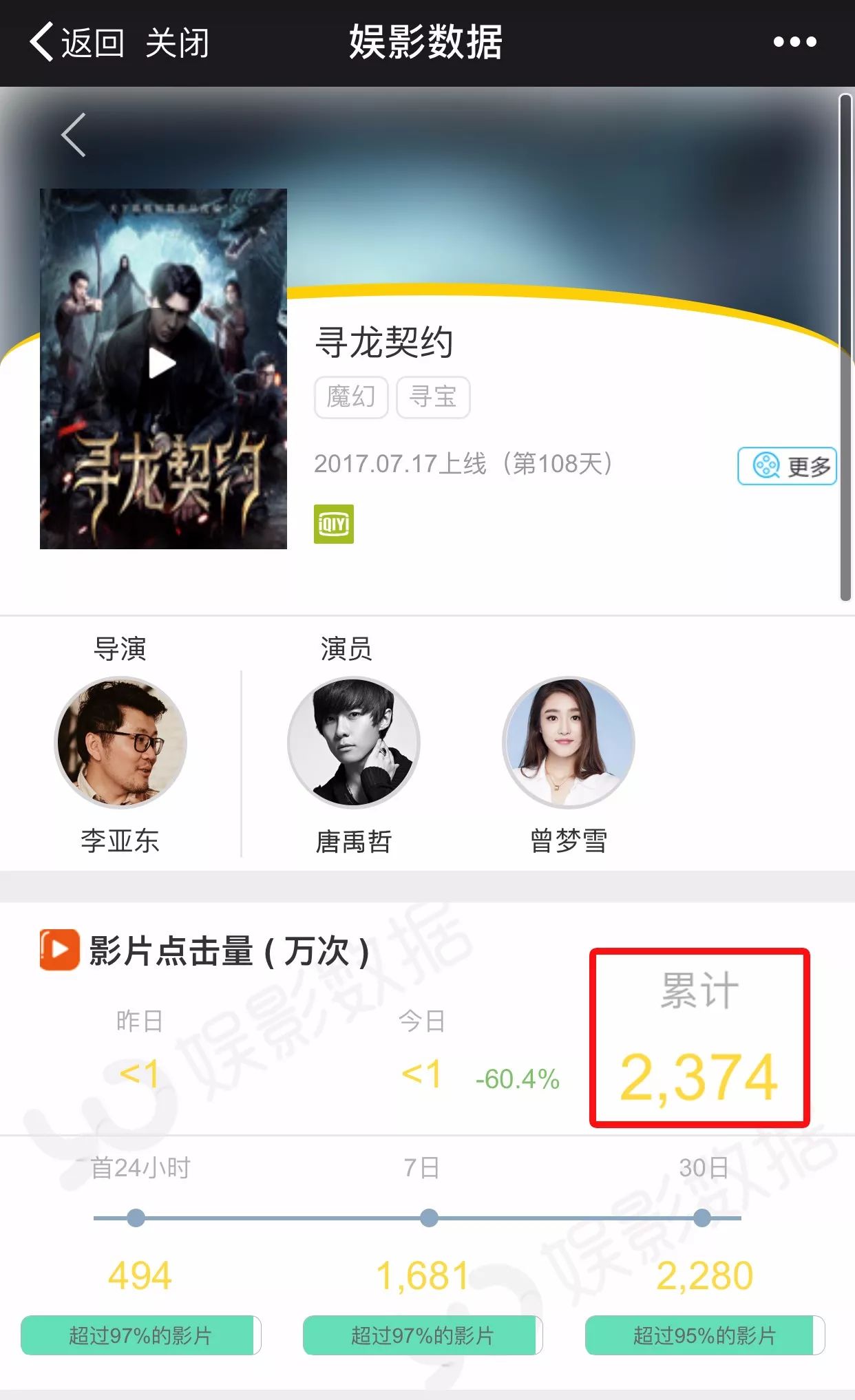 近日,娱影君就此问题也采访了爱奇艺平台的网络电影相关负责人,为小伙伴们带来第一手资料。