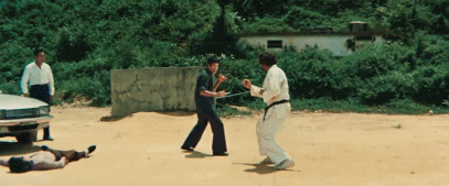 电影《猛龙过江》(1972)中,李小龙敢和老外叫板的影像