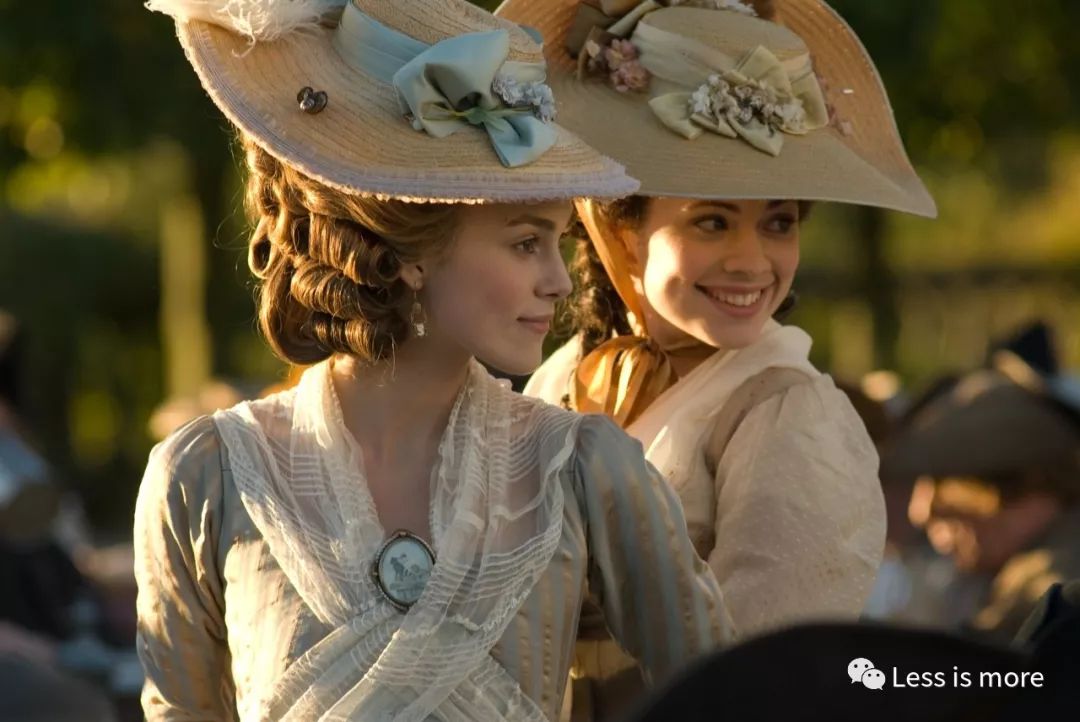与公爵夫人的贵族时尚不同,凯拉·奈特莉出演的另一部影片,体现的是最典型的19世纪初英伦田园生活。这部影片就是谈到英伦文学绕不开的简·奥斯汀名作《傲慢与偏见》。我个人来说,更爱这部片子里的她。