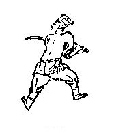 法能:剪杀两翼,左脚右手'雁字势 ’向前,掣步腰击。