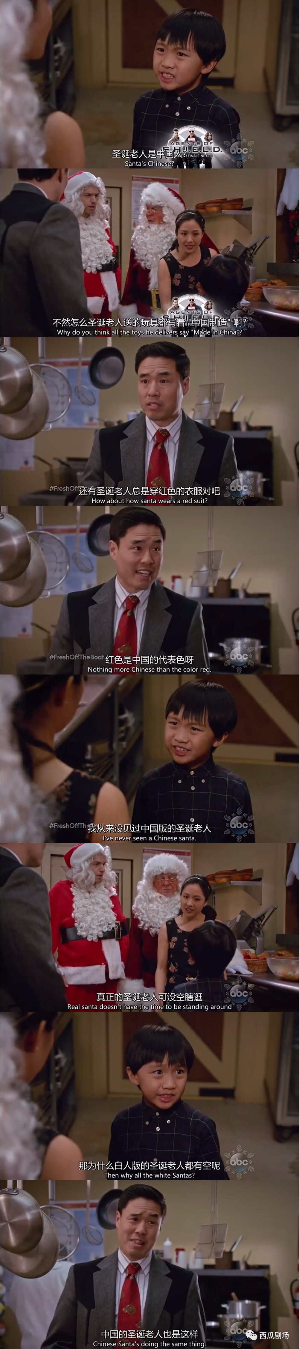 老好人的爸爸,强势的妈妈,乖乖羊的小儿子,还有努力试图融入美国环境的大儿子。其实这些性格特征已经很“中国”了。故事中,爸爸与妈妈的经历也极为不同,妈妈是一个非常热爱中国文化的人,她希望自己的孩子能够记住自己来自哪里,更希望他们能够以自己的文化而骄傲。而对于爸爸来说,作为出生在美国的华人,他有时候虽然不理解妈妈的做法,却又总是助纣为虐。所以总会发生一些令人捧腹大笑的故事。更有意思的是,这部剧的扮演者奶奶是天津人,爸爸是韩国人,妈妈是台湾人。这样的组合拼在一起,似乎也挺符合移民家庭的。
