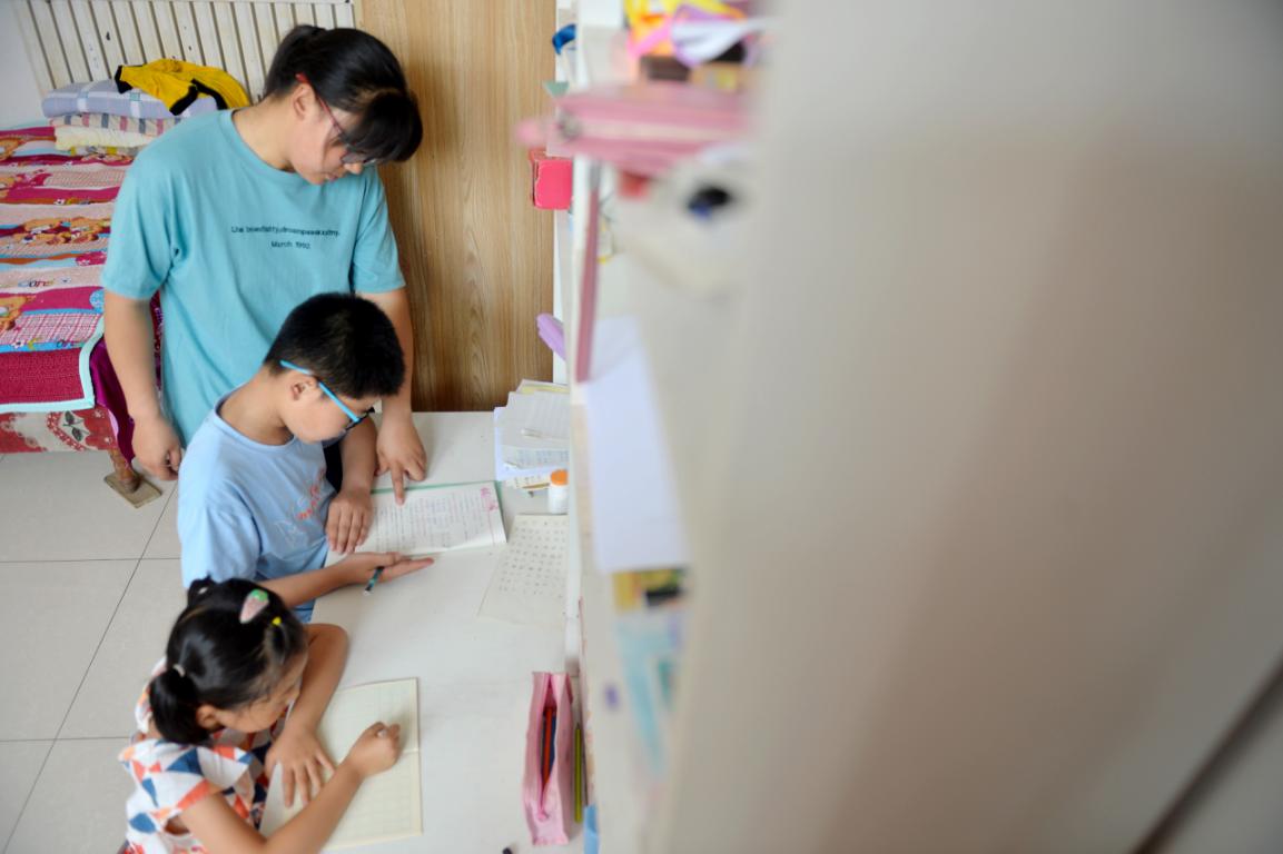 杨雨静辅导孩子写作业