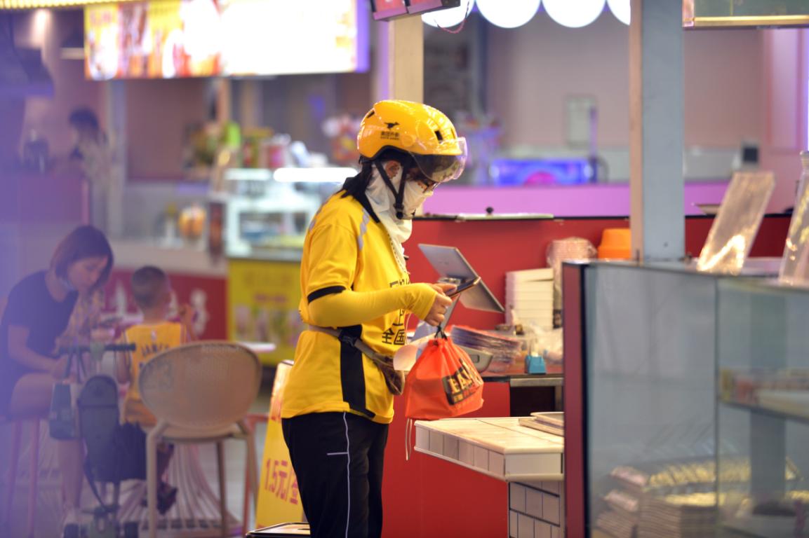 杨雨静在送餐途中。