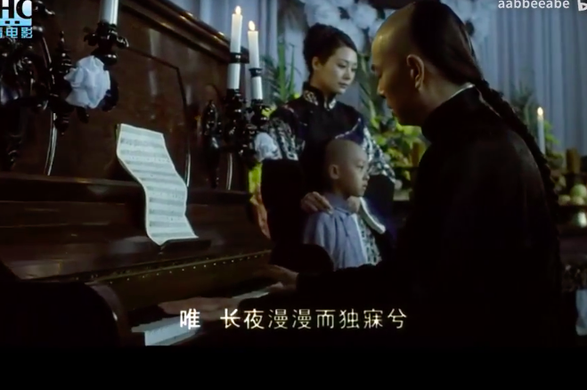 他五岁时,父亲去世,他与母亲在家中的处境更显尴尬。电影中有个片段是少年的他在弹钢琴,母亲很欣慰地看着他说:“要是你爹还活着的话,听到你弹钢琴,该有多高兴啊!”他告诉母亲:“爹当然听得见。”他的母亲接着又充满期望地凑近他说:“要是你能通过乡试求取功名,进士及第的话,你爹会更高兴的。”