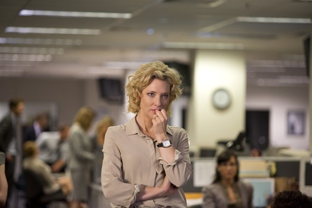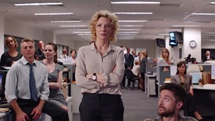 不过,范德比尔特的这部电影有时显得对自身的“正义性”过份自满、缺乏反思。基本上,《真相》是那类电影---由于它关涉的信息太有力、太具备说服性,你会希望它完成得比它实际上的样子更好些:技术上更经得住推敲、叙事切入点更小巧紧凑、再多一些大胆创新。而由于片子是在澳大利亚拍摄的(为了适应布兰切特的日程表),取景上就缺乏一些现实感。假如镜头呈现的是华盛顿—纽约州那些略显岁月风霜的建筑外观,人物行走的正是现实中的宏伟长廊,那么效果无疑会更好。而影片作曲人布莱恩·泰勒的配乐也稍微显得激昂悲壮了一些,旋律过于“英雄化”的后果就是难免有对剧中人物美化拔高之嫌。而范德比尔特对像厨师们排成一行一脸凝重地观看《60分钟》新闻的蒙太奇镜头也处理得有些过火,好像整个美利坚的命运都悬于这一刻似的。
