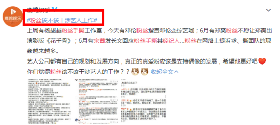 近来,#粉丝该不该干涉艺人工作#一话题频频被提及↓