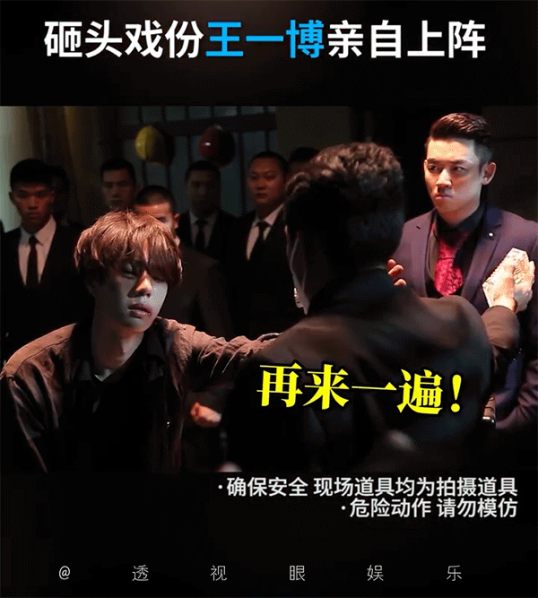 但幕后花絮的每一拳那都是我见落泪……虽然烟灰缸是道具,但被抡起来一遍遍砸头,看着就也挺疼的,作为演员,他确实像武威说的那样:很努力的在拼!