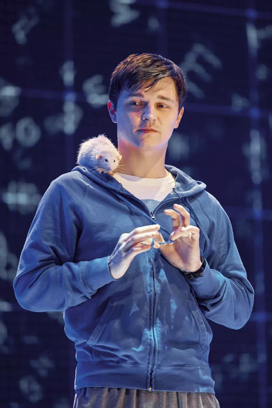 这是英国国家话剧院舞台剧《深夜小狗离奇事件》(the curious incident of the dog in the night-time,以下简称《深夜小狗》)的开场一幕。故事主角是15岁少年克里斯托弗,他患有阿斯伯格综合征,通俗讲就是自闭症,但也拥有超出普通人的记忆力,比如,知道所有国家及首都的名字,能背出7507以内所有的质数;与此同时,他又有严重的社交障碍,不能与人发生肢体接触,只能专注于非常有限的事物。