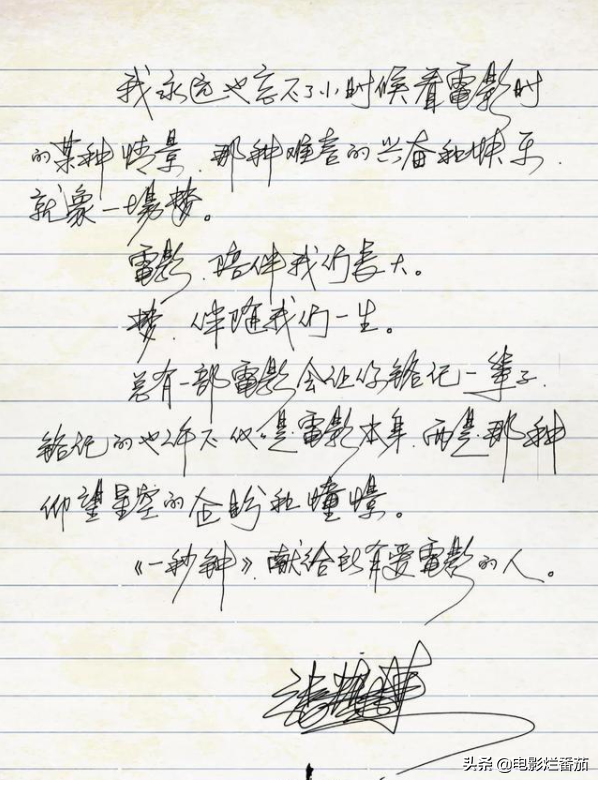 张导还因此写过一封“情书”——