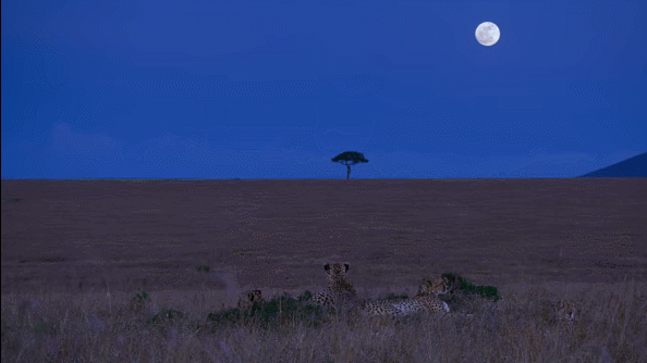 片中没有解说,但在明亮的月光下,我很容易就认出了这片驰骋过不知多少次的非洲大草原。