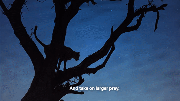 熟悉的动物,比如猎豹和狮群,在做着你从未目睹的事情;不熟悉的动物,比如发光的青蛙,做着你从未想象过的事情。