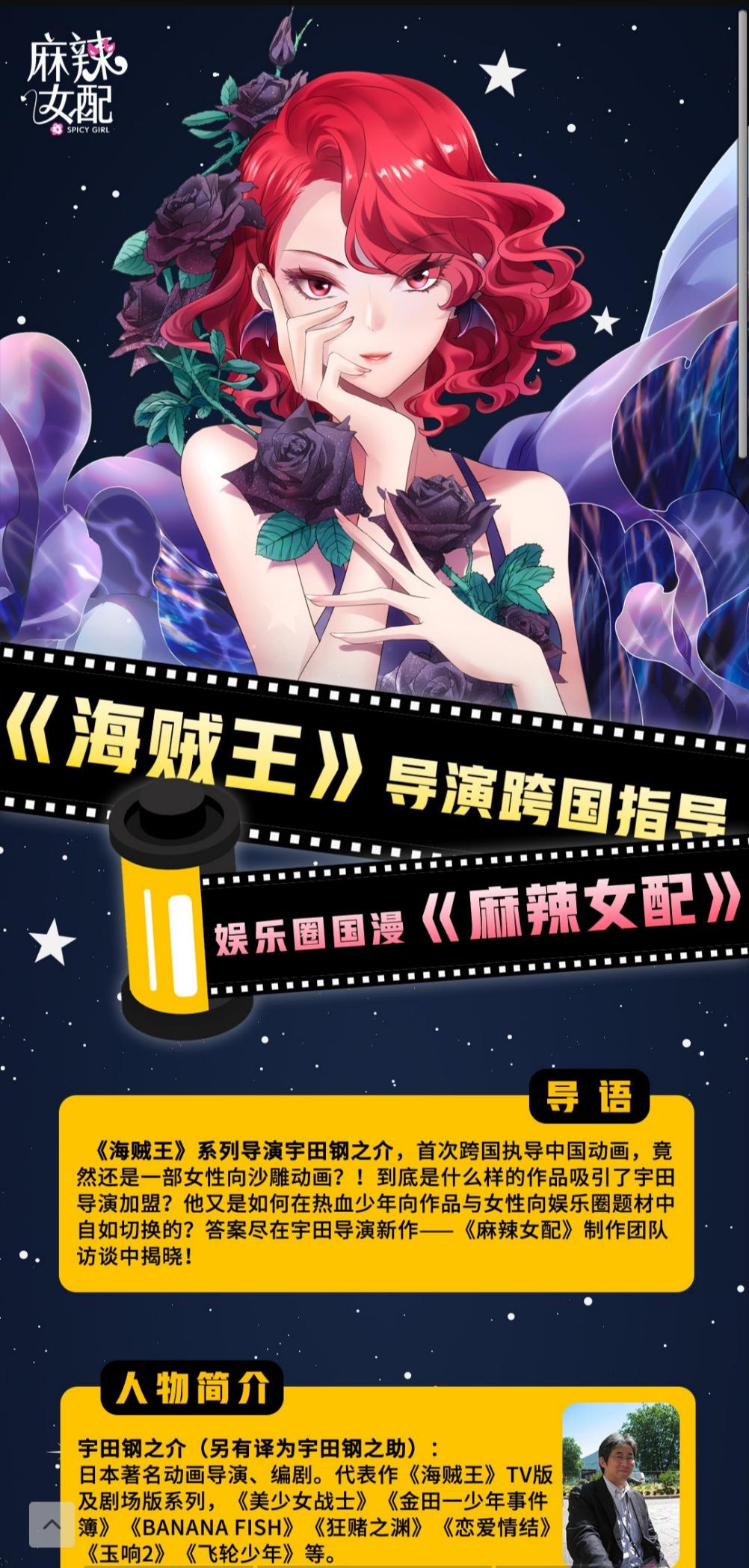 此次宇田钢之介及其团队还特意到达中国上海等地实地取材,努力融入《麻辣女配》的中国特色的同时加入日化元素,比如麻辣女配的苏晓的原型是日本的"恶女专业户"菜菜绪,可见还是比较用心了。