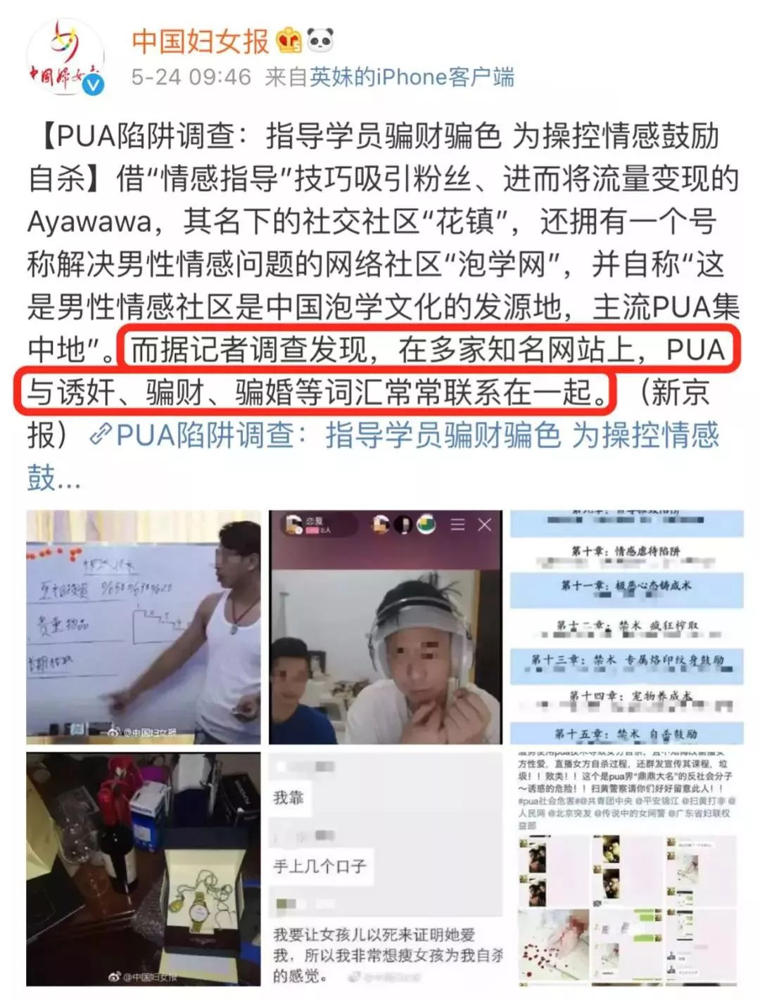 记得早几年陈晓楠的节目中曾经邀请过一位接受过pua训练的男生来采访,男生看起来普普通通,可谁也看不出来他竟然用pua与400女孩有过“深入交流”,甚至有女孩为他自杀。