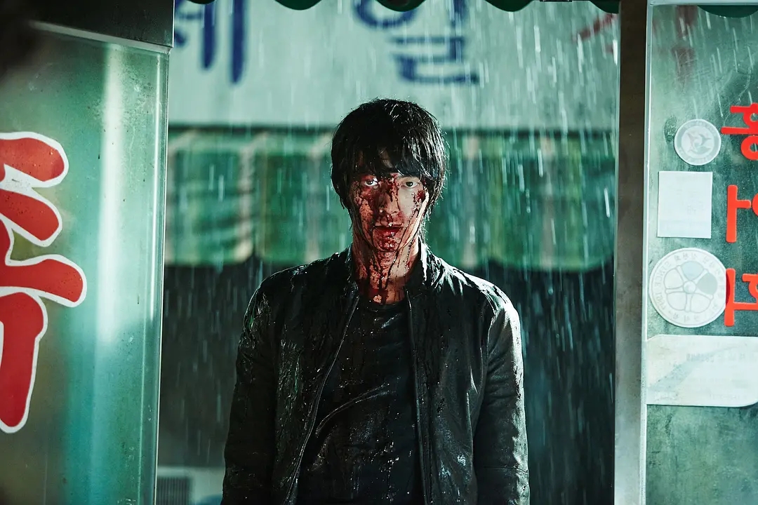 片首泰秀不计后果帮自己的哥哥讨回手机,他一直是一副抑郁冷漠的面孔,并且他很强大,一个人能够杀死酒吧里的几个人。