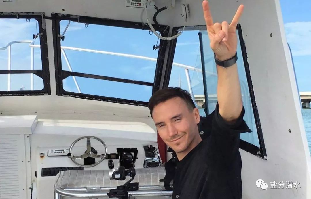 stewart与同伴在加拉帕戈斯拍摄锤头鲨任务时