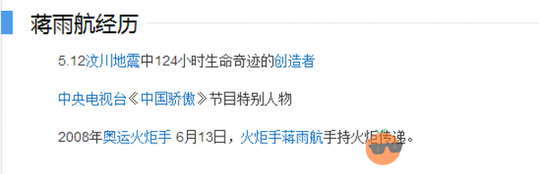 在他的百度百科里,写着他的经历:5.12汶川地震中124小时生命奇迹的创造者