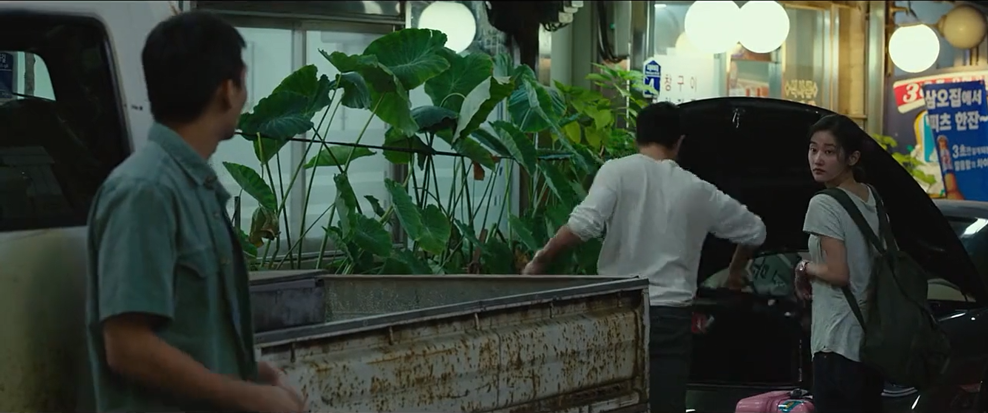 影片的结尾,钟秀约本来到偏僻的农田,这里有很多塑料棚。钟秀拔刀捅死了本,之后将本塞进保时捷连同自己的衣服一把火烧了。