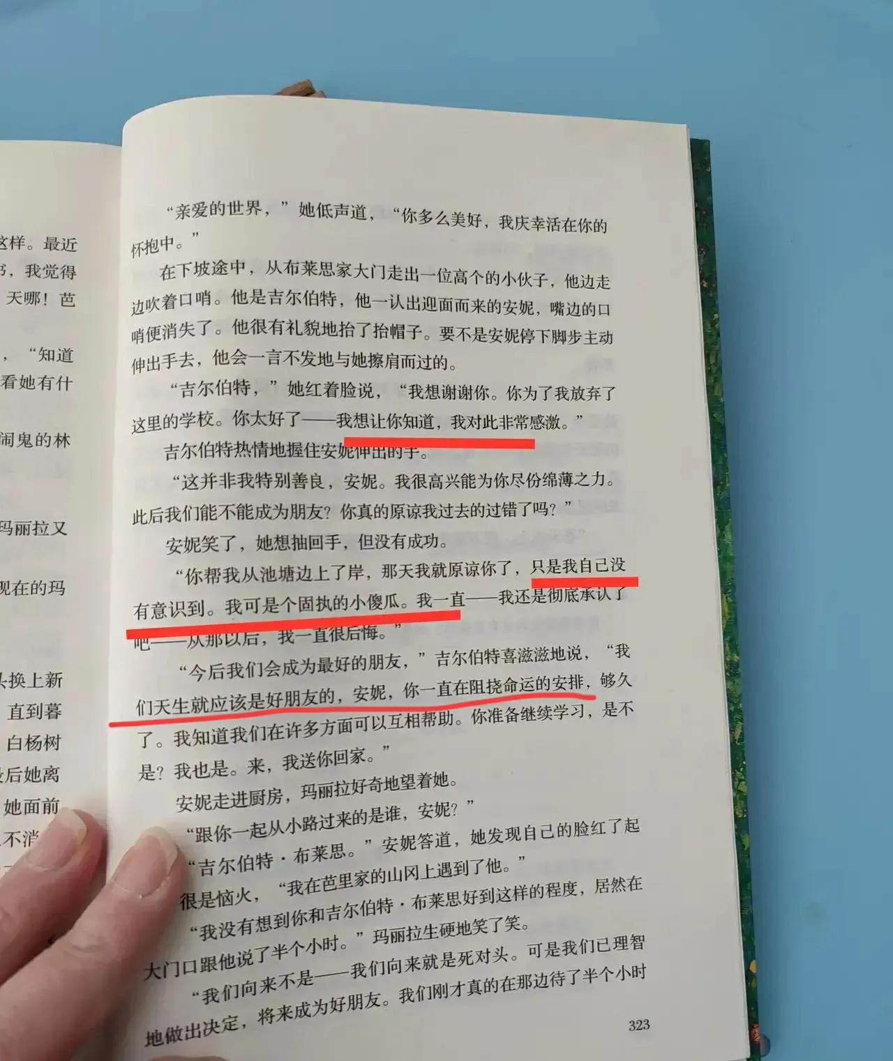 “今后我们会成为最好的朋友。”吉尔伯特喜滋滋地说,“我们天生就应该是好朋友的,安妮,你一直在阻挠命运的安排,够久了。我知道我们在许多方面可以互相帮助。你准备继续学习,是不是?我也是。来,我送你回家。”