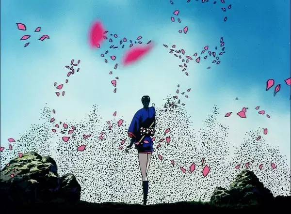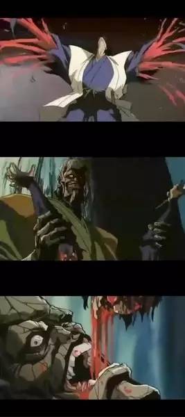 该如何形容本片,“暴力美学”四个字就是最好的概括。也多亏是动漫,这样一部一言不合就把人斩成两段、劈成两半,一言不合就脱衣,一言不合就血流成河的作品才稍微能让大众接受一点。1993年的动漫,现在看来,依旧很美。画面阴晴交融,各种诡谲、各种唯美,很哥特、很鬼魅,比如下图: