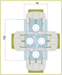 十字布局是占用面积最大的坐法。这种坐法适合比较正式的场合。因为要留出进出通道,这种布局对空间的占用远远超出图中所示范围。