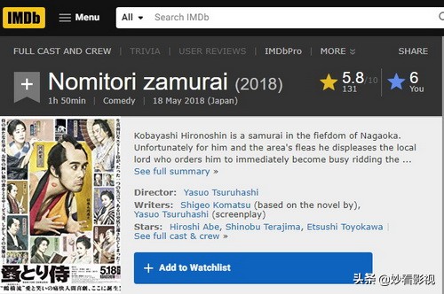 片名のみとり侍 / 蚤とり侍 / nomitori samurai /flea-picking.samurai (2018),别名陪睡大人(台)。
