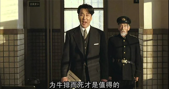 最终向坂还是忍不住地对着离去的椿一高喊:平安回来,不要为了祖国而牺牲,为牛排而死才是值得的。