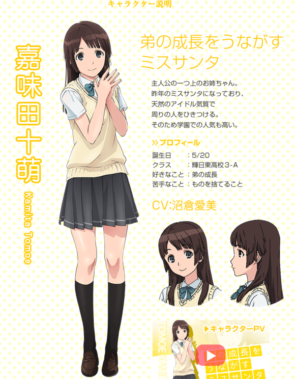 男主的姐姐,跟《蛋吻》的妹妹线一样,《清恋》也有一条姐姐线,而且据说姐姐还是个天然属性的隐藏巨乳?咳咳,不过讲道理姐姐线应该是亲情向的,想看德国骨科的老司机自觉去面壁吧。