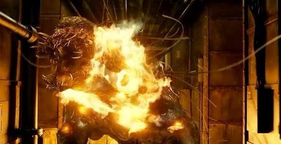 随后女主角看见自己最心爱的男朋友被杀,开启了开挂模式,骑着摩托车遛怪兽玩,最后女主角用把怪兽引到一个地方,用摩托车和汽油引发了一场大爆炸,本以为一切都结束的时候,谁都没想到这只怪兽依然没有死,经过火烧油炸我都闻到香味了,哈哈,估计女主看见怪兽还没死,眼泪都掉下来了吧……