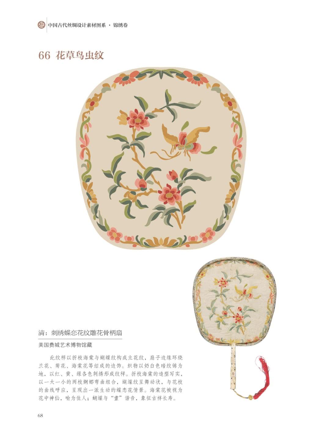 这些各式各样的纹样都像是一个宝藏,可以应用到各类设计上。有学者就将中国明清丝绸锦绣按纹样题材分类,分为植物纹样、动物纹样、人物纹样、器物纹样、自然元素及抽象纹样五部分: