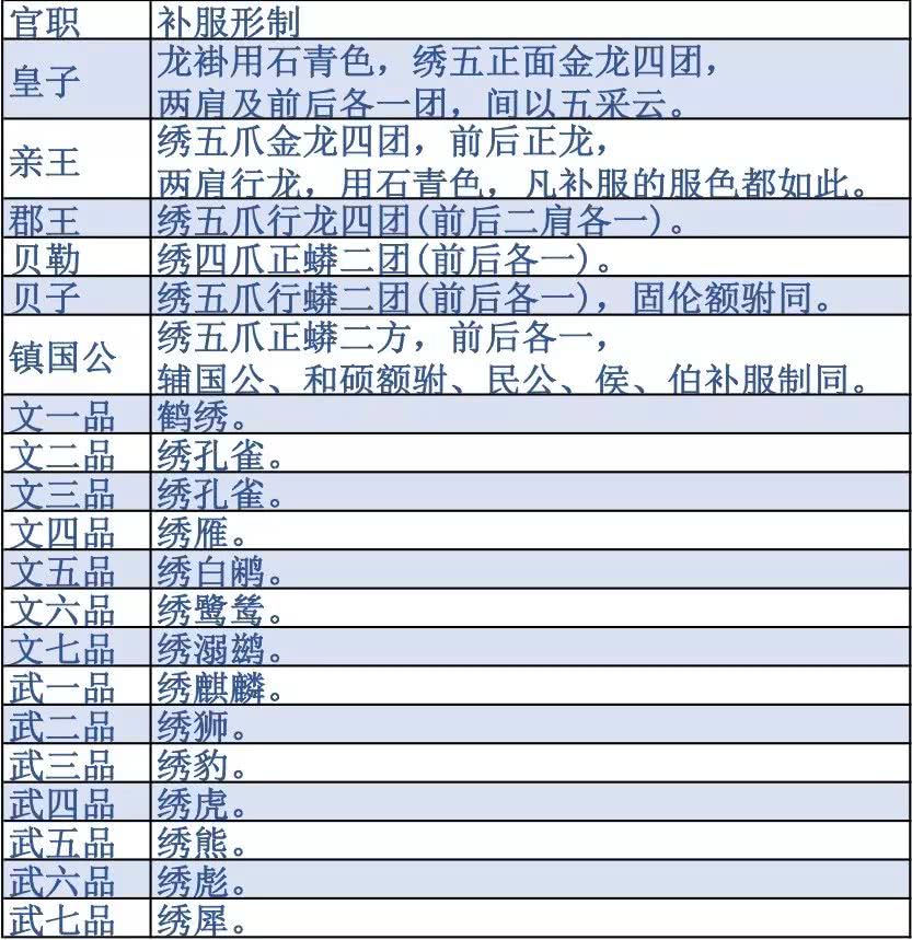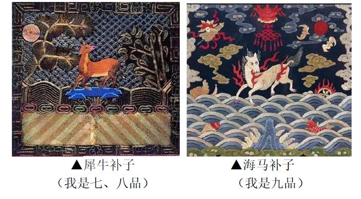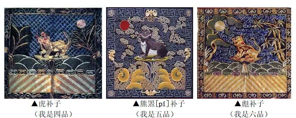 比如说,七品文官用鸳鸯,而不是鸂鶒;一品武官不用麒麟,和二品武官一样用狮子;六品、七品武官用彪,八品用犀牛的等等......这些都是些“小异”,主要的动物就是这些啦。