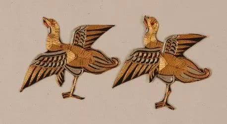 清代文官补子上的标志,形似云雁,为清代文官四品的补子。质地为丝。
