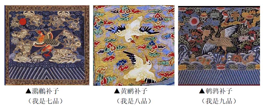 一品仙鹤,二品锦鸡,三品孔雀,