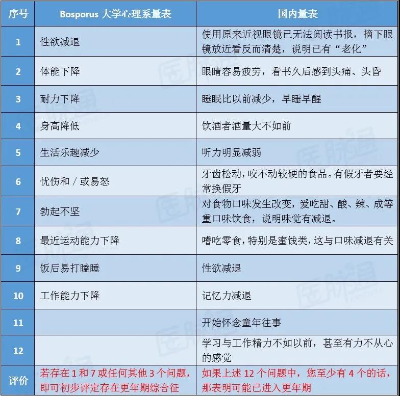 症状评价:一般采用量表积分的方法,半定量的衡量某一症状的权重,如国际上选用的bosporus大学心理系量表以及国内的相关量表,如患者情况符合一定的评价标准即可认为可能存在更年期综合征。
